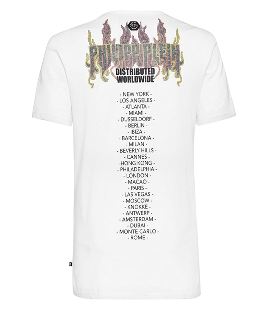 Playera Philipp Plein Flame Cristales Blanca