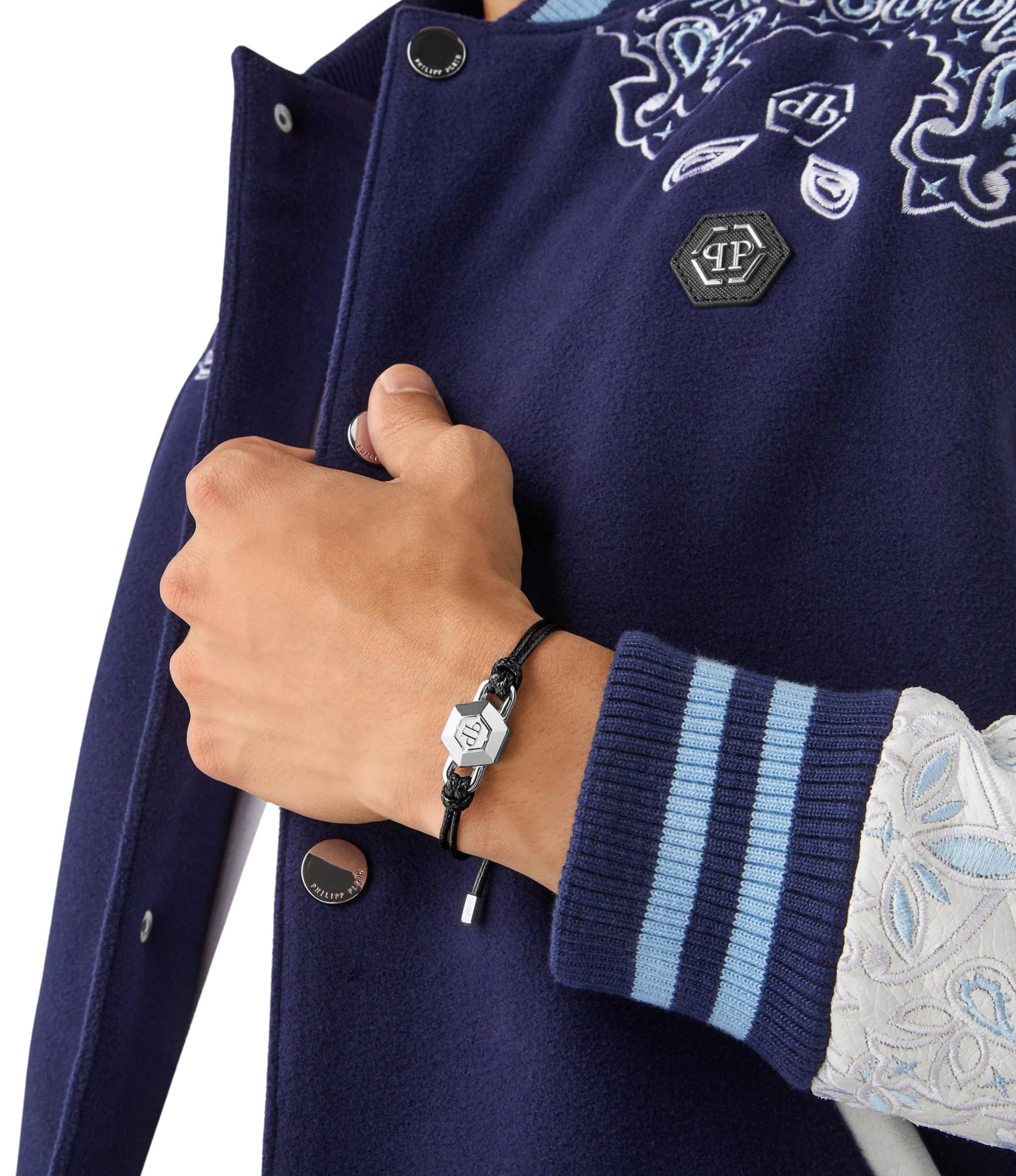 Fuerza industrial con actitud contemporánea. Esta pulsera Edge de Philipp Plein combina acero inoxidable pulido con un cordón de algodón negro trenzado, creando un contraste sofisticado entre lo robusto y lo casual. El logo grabado aporta un toque distintivo, ideal para quienes buscan un accesorio masculino con carácter y diseño de alto impacto.