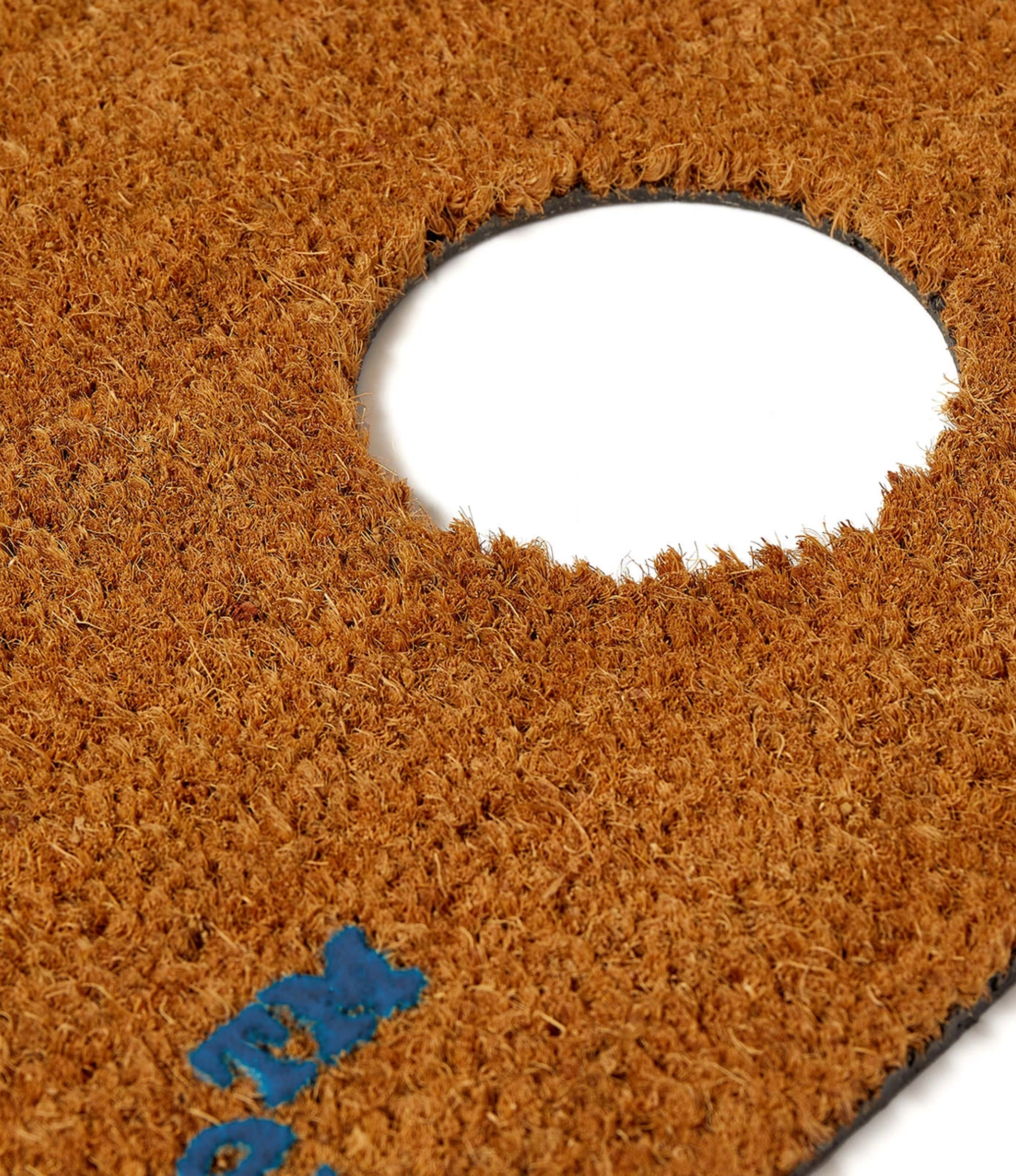 Logo en azul vibrante sobre fondo marrón