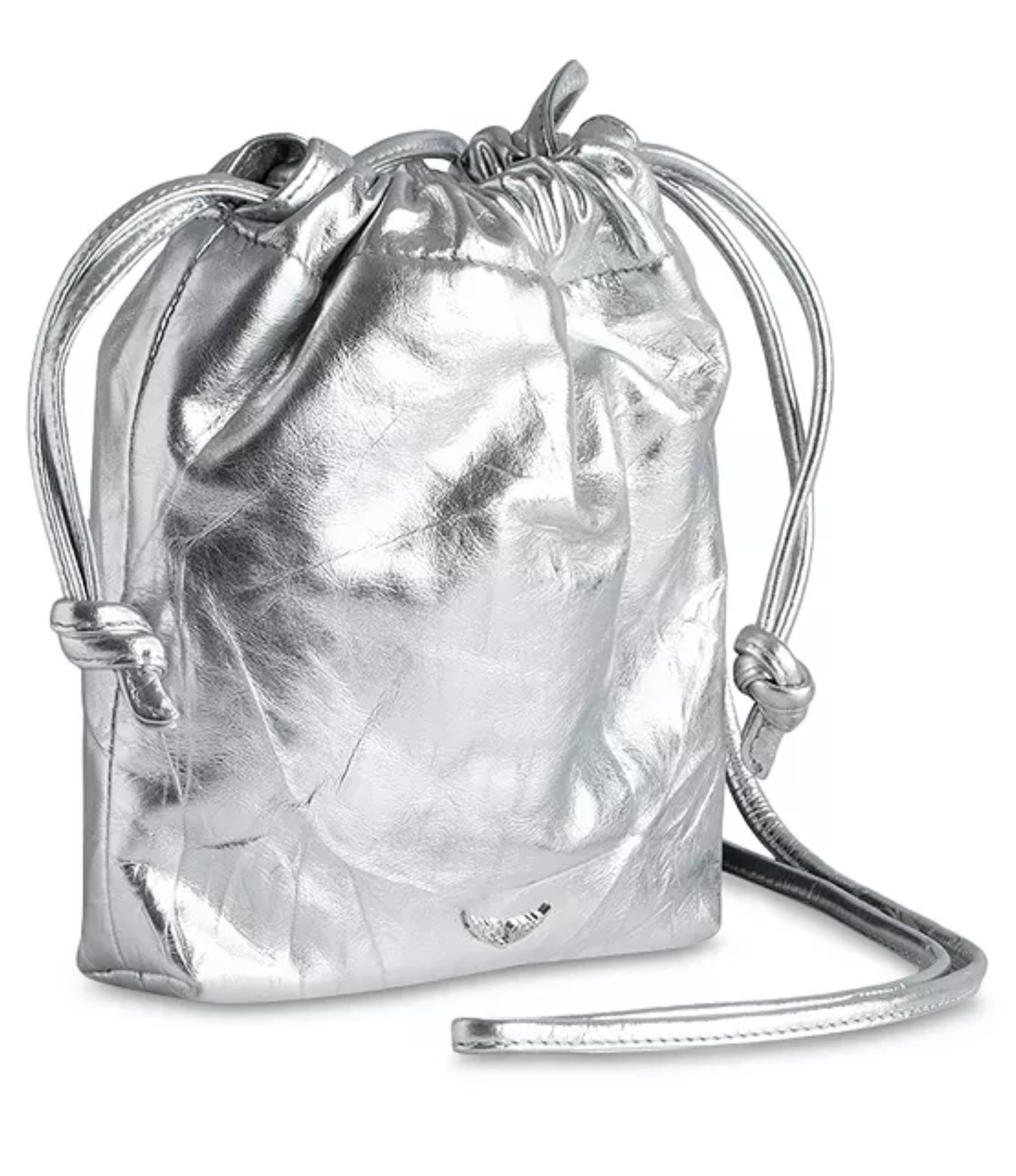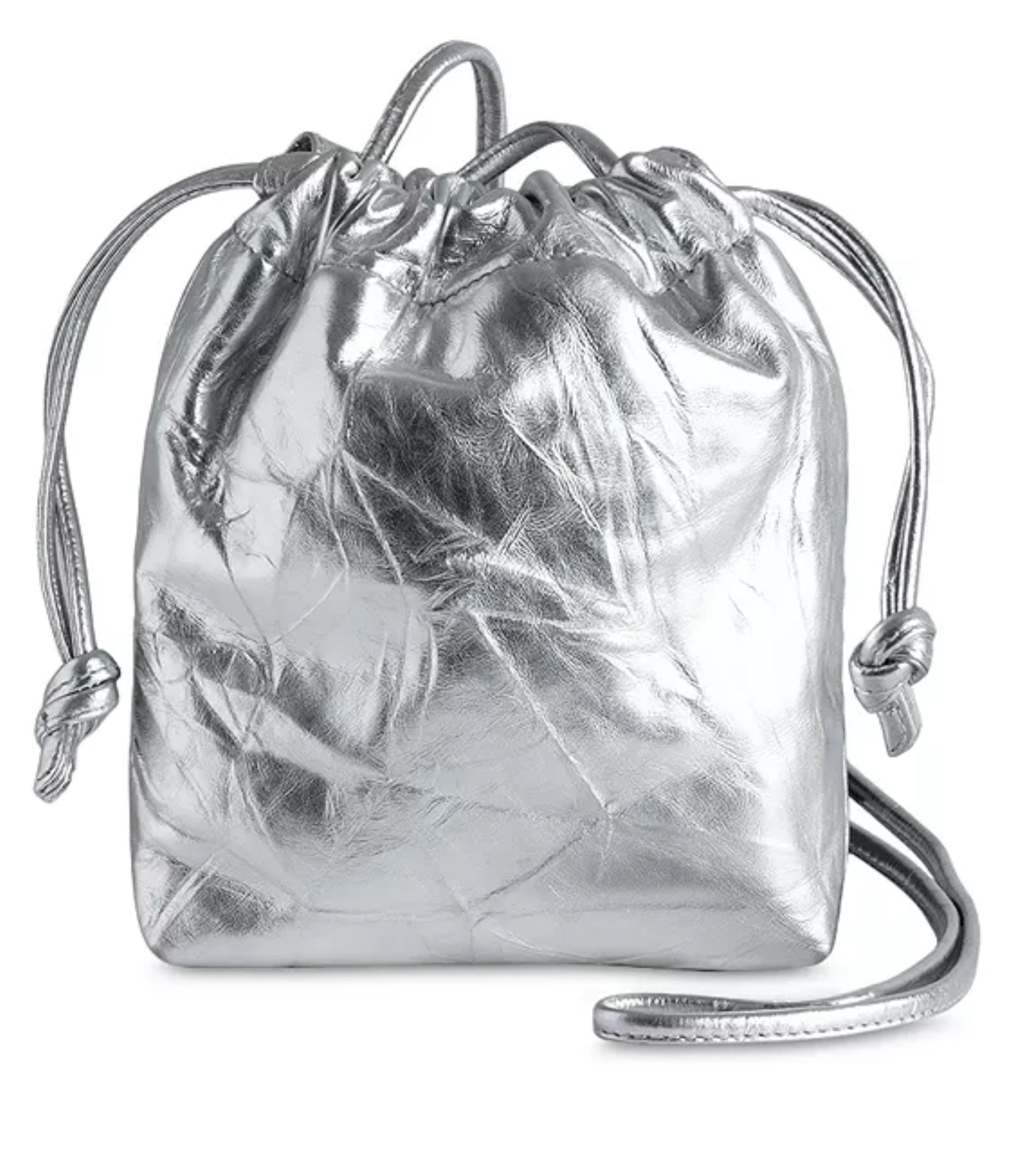 Destaca por su cuero metálico premium que ofrece un acabado brillante y reflectante, aportando un toque luminoso y audaz que eleva cualquier look diario o nocturno sin esfuerzo. El diseño bucket compacto presenta cierre por cordón que permite ajustar la apertura y asegurar el contenido, combinado con una correa larga ajustable para llevarla al hombro o cruzada. Su tamaño mini lo hace ideal para llevar lo esencial: teléfono, llaves, cartera pequeña, labial y tarjetas, manteniendo las manos libres mientras proyecta estilo distintivo.